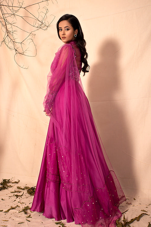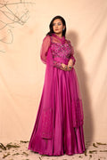 Plum Purple Peplum Style Hand Embroidered Jacket with sharara set Plum Purple Peplum Style Hand Embroidered Jacket with sharara set