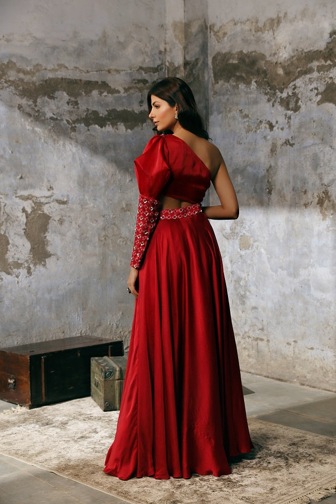 Product will be delivered in 30 - 45 days depending on the outfit ordered. For urgent deliveries/queries, please contact us on +91 9873886148